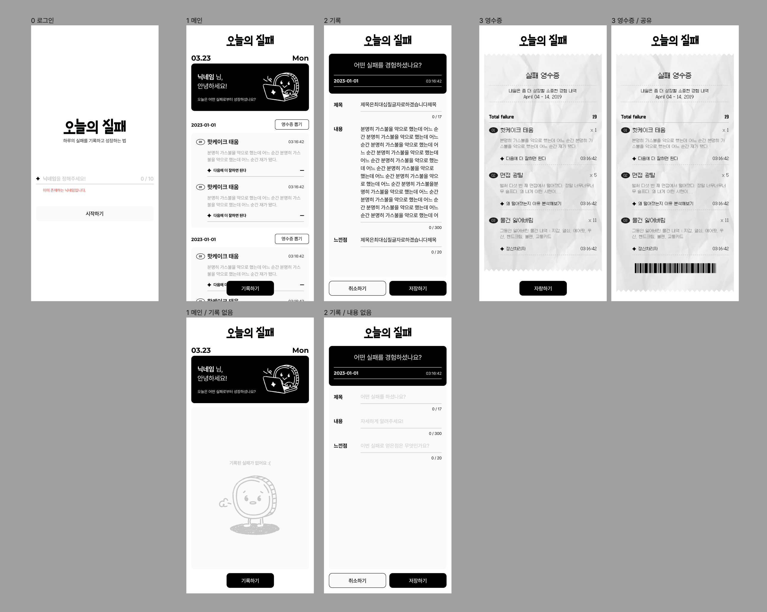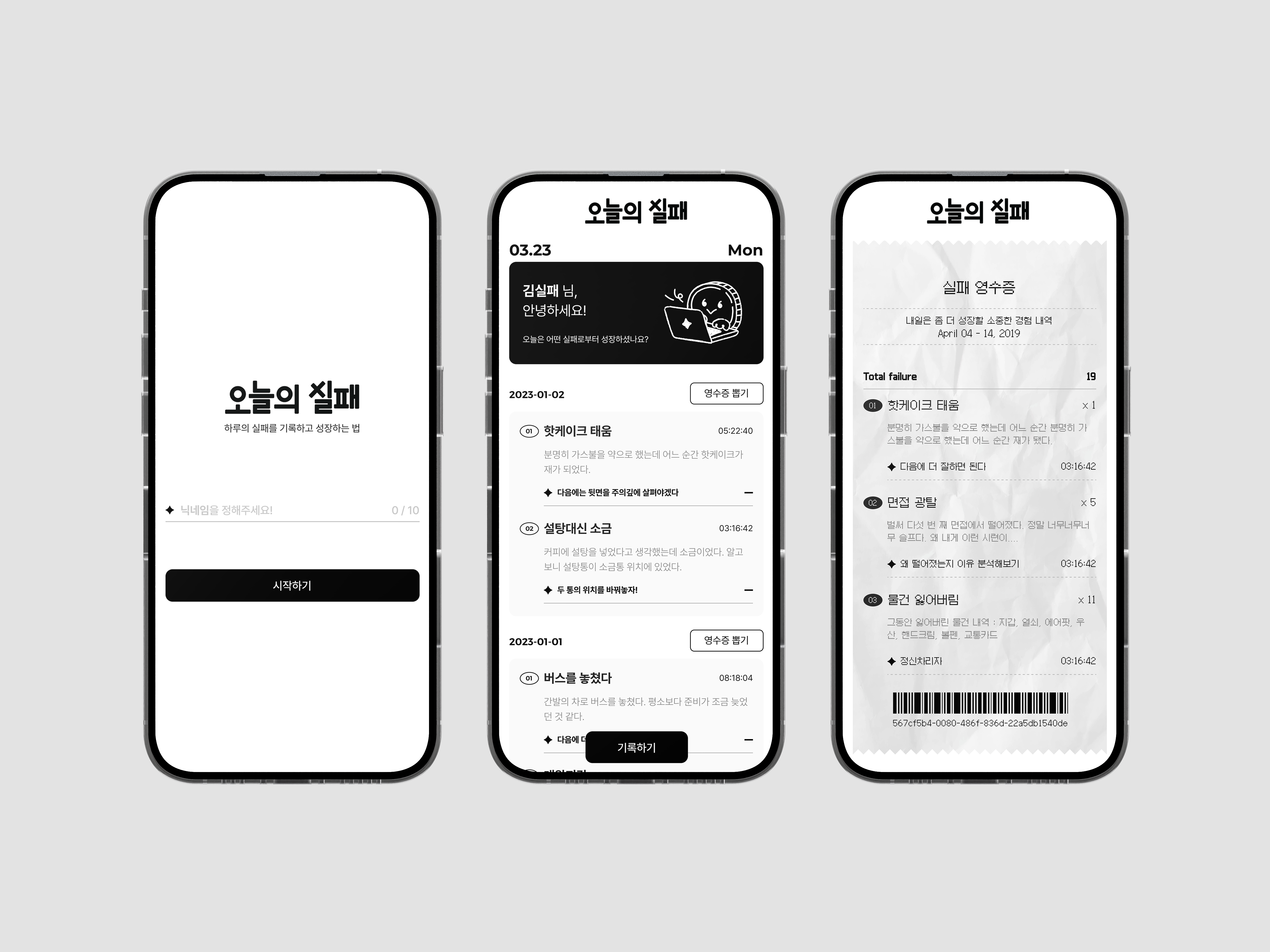 오늘의 실패를 영수증으로 남겨보세요!